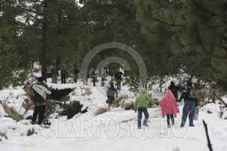 LA MALINCHE, TLAXCALA, 09FEBRERO2012.- Aspecto de la parte alta del parque Nacional La Malinche luego de que por tres dias consecutivos cayeran nevadas asociadas con los consecutivos frentes frios que han azotado la región, situación que ha ocasionado una inusual afluencia de visitantes a este sitio ubicado en la zona oriente del estado. Según autoridades estatales las nevadas han atraido a visitantes de varios estados cercanos y estiman que en la ultima semana han visitado el parque unas quincemil personas. FOTO: J. GUADALUPE PÉREZ/CUARTOSCURO.COM