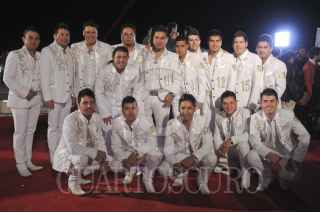 MAZATLÀN, SINALOA, 09FEBRERO2012.- La banda sinaloense, "M16" desfiló como invitado especial la noche de hoy en el Centro Internacional de Mazatlàn, en los "Premios Nacionales de la Música Grabada OYE! 2012 FOTO: FRANCISCO RODRÍGUEZ/CUARTOSCURO.COM