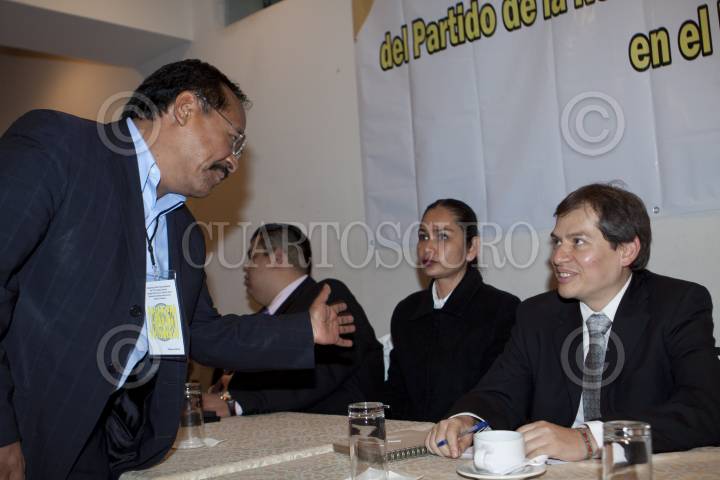 MÉXICO, D.F. 11FEBRERO2012.- Alejandro Sanchez Camacho y Manuel Oropeza, presidente del PRD - D.F., durante el Pleno Extraordinario del Consejo Electivo del Partido de la Revolución Democrática en el Distrito Federal en donde se le otorgo la constancia de mayoría como candidato a Miguel Ángel Mancera para la jefatura de gobierno del Distrito Federal. FOTO: RODOLFO ANGULO/CUARTOSCURO.COM