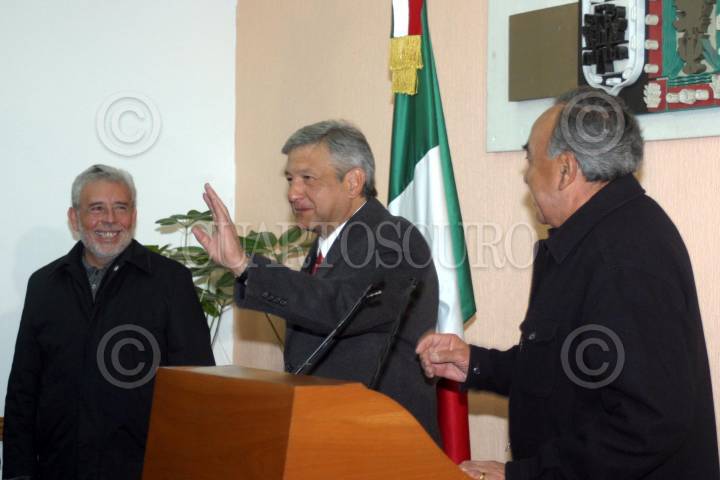 MEXICO, D.F. 19ENERO2005.- Al centro Cesar Buenrostro, Secretario de Obras Públicas del D.F., informó acerca de las obras viales que se construyen en la capital, al término de la conferencia matutina de Andrés Manuel López Obrador, jefe de gobierno del D.F. FOTO: Sandra Perdomo/CUARTOSCURO.COM