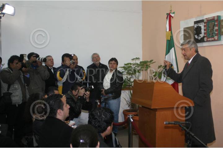 MEXICO, D.F. 19ENERO2005.- Al centro Cesar Buenrostro, Secretario de Obras Públicas del D.F., informó acerca de las obras viales que se construyen en la capital, al término de la conferencia matutina de Andrés Manuel López Obrador, jefe de gobierno del D.F. FOTO: Sandra Perdomo/CUARTOSCURO.COM