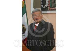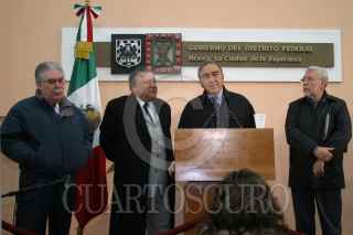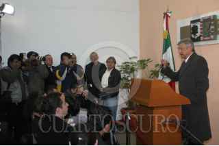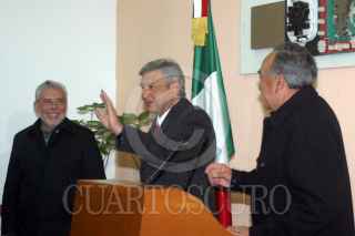 MEXICO, D.F. 19ENERO2005.- Al centro Cesar Buenrostro, Secretario de Obras Públicas del D.F., informó acerca de las obras viales que se construyen en la capital, al término de la conferencia matutina de Andrés Manuel López Obrador, jefe de gobierno del D.F. FOTO: Sandra Perdomo/CUARTOSCURO.COM