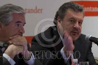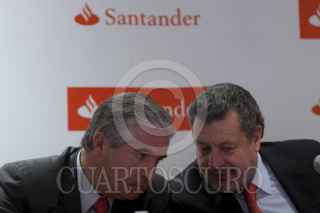 MÉXICO, D.F., 13FEBRERO2012.- Marcos Martínez Gavica Presidente Ejecutivo del Banco Santander, acompañado de Pedro Moreno Cantalejo, Vicepresidente de Administración de Finanzas, durante la Presentación de Resultados del 4to trimestres del 2011. FOTO: GUILLERMO PEREA/CUARTOSCURO.COM