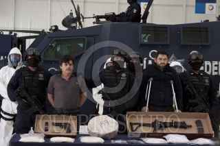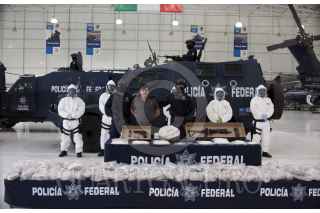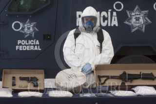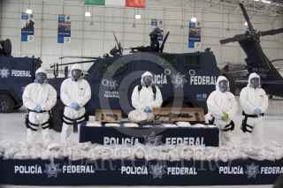 MÉXICO, D.F., 14FEBRERO2012.- La Secretaría de Seguridad Pública Federal detuvo en Culiacán, Sinaloa, a Jaime Herrera, alias "el JH" o "el viejito", identificado como uno de los principales productores y distribuidores de drogas sintéticas al servicio del "cártel del Pacífico" encabezado por Joaquín Guzmán Loera, alias "el Chapo", y por Ismael Mario Zambada, alías "el Mayo Zambada". Herrera es prófugo de la justicia en Estados Unidos, donde cuenta con antecedentes de actividades delictivas en diversos estados. En este operativo también se detuvo a Felipe Naranjo Sevilla, originario de Culiacán, de 51 años de edad, presunto responsable de pagar los insumos químicos y la nómina de las personas que producían la metanfetamina (ICE). En el operativo fueron asegurados una arma larga, una corta, dos vehículos, tres paquetes de un peso aproximado de un kilo cada uno que contenían material con características del ICE y 147 paquetes más con un peso aproximado de 202 kilogramos, cuya sustancia responde a las características de la metanfetamina. FOTO: MOISÉS PABLO/CUARTOSCURO.COM
