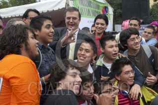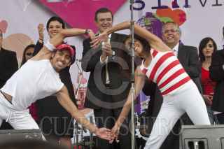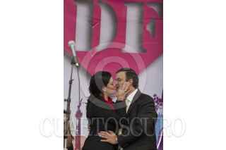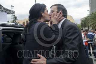 MÉXICO, D.F., 14FEBRERO2012.- Marcelo Ebrard Casaubón, jefe de Gobierno local, y su esposa Rosalinda Bueso, a su salida de la feria del Amor y la Amistad que se realizó en el Monumento de la Revolución. FOTO: ISAAC ESQUIVEL/CUARTOSCURO.COM