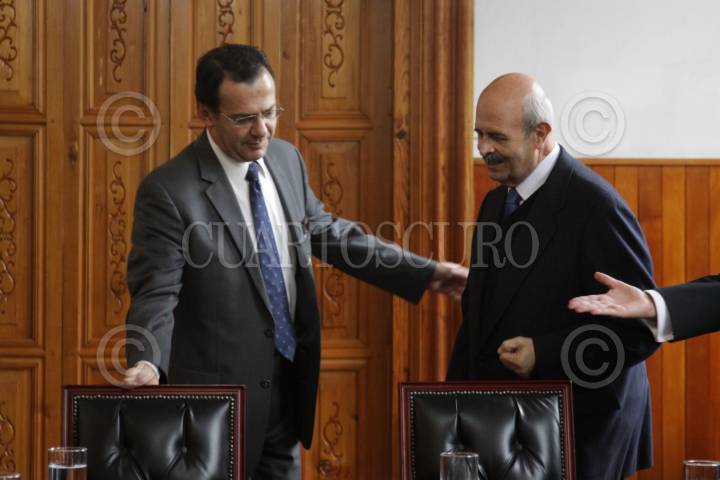 MORELIA, MICHOACÁN, 15FEBRERO2012.- Fausto Vallejo Figueroa tomó protesta como gobernador del estado en el congreso estatal. Leonel Godoy acudió al acto protocolario. FOTO: IVÁN STEPHENS/CUARTOSCURO.COM