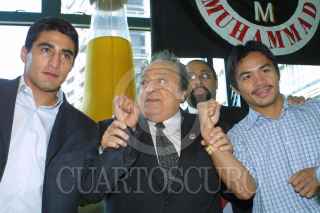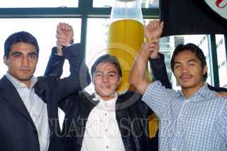 MEXICO, D.F. 19ENERO2005.- El boxeador mexicano Erick "El Terrible" Morales se enfrentará al filipino Manny Pacquiaom, en la pelea pactada el 19 de Marzo en el MGM de las Vegas. En la gráfica los acompaña el boxeador Jorge "Travieso" Arce. FOTO: Anastasia Elizarrarás/CUARTOSCURO.COM