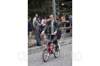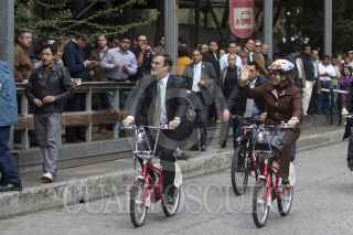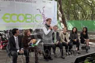 MÉXICO, D.F., 16FEBRERO2012.- Marcelo Ebrard, Jefe de Gobierno, paseo en bicicleta durante la ceremonia del 2 Aniversario de Ecobici, en el Bosque de Chapultepec. Este sistema es para el préstamo de bicicletas y que los ciudadanos puedan hacer viajes cortos por medio de suscripción anual. FOTO: MOISÉS PABLO/CUARTOSCURO.COM