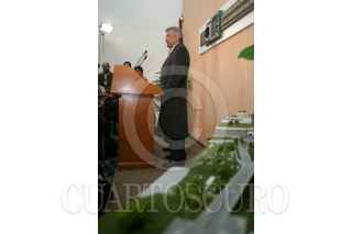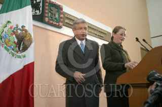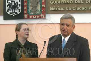 MEXICO, D.F. 20ENERO2005.- Laura Itzel Castillo, titular del Instituto de Vivienda del D.F. y Andrés Manuel López Obrador, jefe de gobierno de la ciudad de México durante la conferencia de prensa en el antiguo palacio del ayuntamiento. FOTO: Nelly Salas/CUARTOSCURO.COM