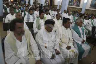 OAXACA, OAXACA, 16FEBRERO2012.- Este jueves se desarrolló una misa que la diócesis de Antequera denominó como del "desagravio", la cual fue oficiada por el arzobispo de Antequera José Luis Chávez Botello, a la ceremonia religiosa asistieron padres pertenecientes de distintas parroquias de la capital. La misa se celebró la parroquia de Nuestra Señora de los Pobres. La celebración litúrgica se debió al robo de las reliquias de la Iglesia de San Pedro Yosotato el pasado 8 de febrero, en dicho robo también hurtaron varios copones, códices y ostias consagradas. FOTO: ARTURO PÉREZ ALFONSO/CUARTOSCURO.COM