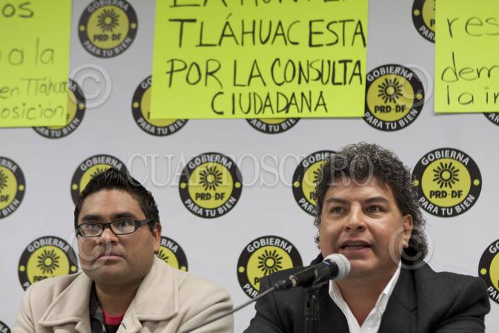 MÉXICO, D.F., 17FEBRERO2012.- Los precandidatos a dirigir la delegación Tláhuac Rigoberto Salgado Vázquez, Alejandro López Villanueva, y Teresa Ramírez Maya, ofrecieron una conferencia de prensa para hablar que no permitirán una imposición en la designación del candidato a esta demarcación, ya que ellos proponen una elección a través de la encuestas. Los perredistas advirtieron que de no haber una consulta pública con la cual se seleccione al candidato del PRD en Tláhuac, recurrirán al Tribunal Electoral del Distrito Federal para defender sus derechos políticos y jurídicos. FOTO: MOISÉS PABLO/CUARTOSCURO.COM