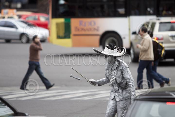 MÉXICO, D.F., 18FEBRERO2012.- Un artista urbano ejecuta un acto malabarista sobre avenida Reforma. FOTO: MOISÉS PABLO /CUARTOSCURO.COM