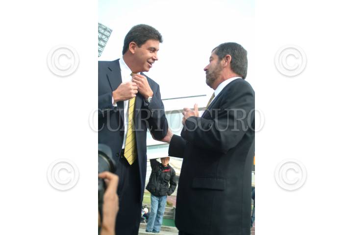 MEXICO, D.F. 20ENERO2005.- El equipo bicampeón del balonpié nacional, Pumas de la Universidad Nacional Autónoma de México (UNAM) se tomaron la fotografía del recuerdo en la cancha del estadio de Ciudad Universitaria. En la gráfica Hugo Sánchez Márquez, Juan Ramón de la Fuente y Arturo Elías Ayub entre otros. FOTO: Iván Stephens/CUARTOSCURO.COM