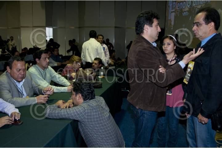 MÉXICO, D.F., 18FEBRERO2012.- Simpatizantes de Alberto Trejo, precandidato a jefe delegacional de la Gustavo A. Madero, intentan entrar a la reunión con Jesús Zambrano en una sala contigua a la sesion que se llevó acabo en el 1er Pleno Ordinario del VIII Consejo Ordinario. FOTO: FRANCISCO RODRÍGUEZ /CUARTOSCURO.COM