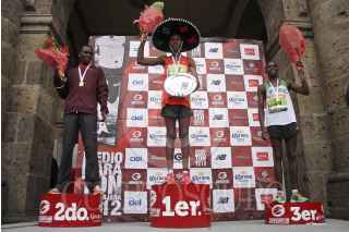 GUADALAJARA, JALISCO, 19FEBRERO2012.- Guadalajara, Jalisco. 19FEBRERO2012.- Hoy se llevo a cabo el Medio Maratón Guadalajara 2012 en donde se recorrieron 21 KM por calles de esta ciudad. En la rama Varonil los Kenianos dominaron el podio llevandose el primer lugar la Keniana, Genoveva Jelagat Kigen, el segundo y tercer sitio, lo obtuvieron las Mexicanas Margarita Hernández Flores y Karina Pérez Delgado. FOTOS: FERNANDO CARRANZA GARCIA/CUARTOSCURO.COM