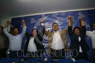 OAXACA, OAXACA, 19FEBRERO2012.- Con el 95 por ciento de las casillas computadas el presidente estatal del PAN dio a conocer el triunfo del exgobernador priista, Diódoro Carrasco Altamirano, con un total de 12 mil 169 votos, como ganador de la primera fórmula al senado de la República, superando al ex-delegado de la Sedesol, Huberto Aldaz, quien alcanzó solamente 6 mil 310 votos. FOTO: ARTURO PÉREZ ALFONSO /CUARTOSCURO.COM