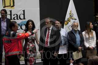 MÉXICO, D.F., 21FEBRERO2012.- Marcelo Ebrard Casaubón Jefe de Gobierno del Distrito Federal acompañado de su esposa Rosalinda Bueso, encabezo la entrega de reconocimientos a diversas instituciones por su apoyo como voluntarios para la entrega de ayuda humanitaria para los Tarahumaras. FOTO: GUILLERMO PEREA /CUARTOSCURO.COM
