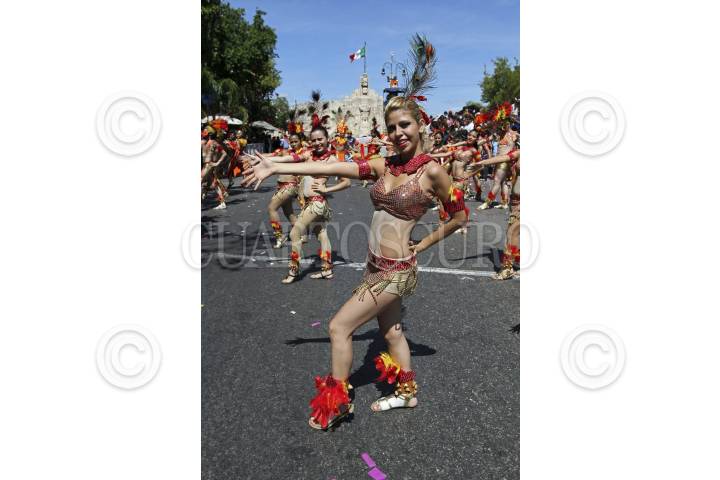 MÉRIDA, YUCATÁN, 21FEBRERO2012.- Los yucatecos disfrutan del desfile de las flores en el ultimo día de carnaval que como cada año se vive en la capital yucateca; artistas, grupos musicales, carros alegoricos y comparsas llenan de alegria las calles de la ciudad. En la imagen la conductora y actriz, Cecilia Galeano. FOTO: FRANCISCO BALDERAS /CUARTOSCURO.COM