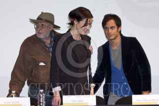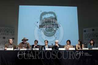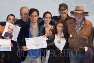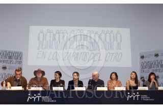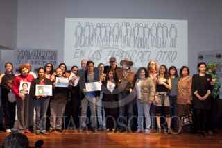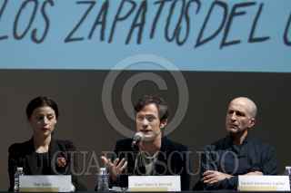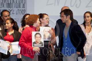 MÉXICO, D.F., 21FEBRERO2012.- El actor Gael Garcia Bernal con algunas de las victimas de la violencia durante la conferencia de prensa en donde se realizo la entrega simbólica del donativo recaudado en el lanzamiento de “En los Zapatos del Otro” que se realizo en el Museo Memoria y Tolerancia. FOTO: RODOLFO ANGULO /CUARTOSCURO.COM