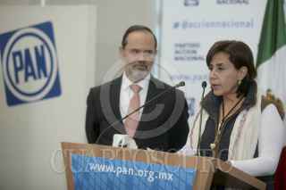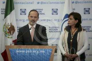 MÉXICO, D.F., 21FEBRERO2012.- El presidente nacional del PAN, Gustavo Madero Muñoz acompañado de la ex candidata al gobierno de Michoacán, Luisa María Calderón, ofrecieron una conferencia de prensa en la sede del partido. FOTO: CUARTOSCURO.COM