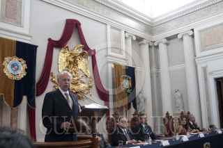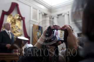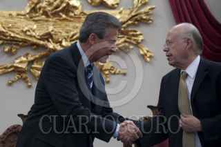 MÉXICO, D.F. 22FEBRERO2012.- José Narro Robles Rector de la UNAM y Héctor López Santillana Secretario de Gobierno del Estado de Guanajuato, encabezo la ceremonia de inauguración de la XXXIII Feria Internacional del Libro del Palacio de Minería, en la que realizó un recorrido al termino de esta. FOTO: GUILLERMO PEREA /CUARTOSCURO.COM