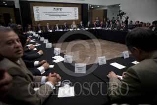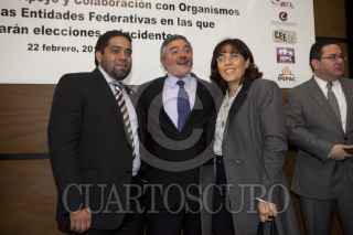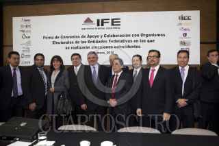 MÉXICO, D.F., 22FEBRERO2012.- Jesús Castillo, consejero presidente del Instituto Electoral del Estado de México, (primero a la izquierda), firmó convenios de Apoyo y Colaboración con organismos Electorales de las Entidades Federativas donde habrá elecciones coincidentes. FOTO: JUAN PABLO ZAMORA / CUARTOSCURO.COM