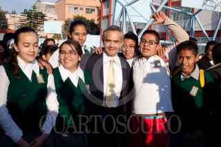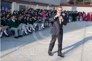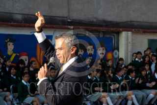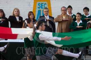 MÉXICO, D.F., 23FEBRERO2012.- Miguel Ángel Mancera, precandidato a la Jefatura de Gobierno por los partidos PRD, PT y Moviento Ciudadano, fue invitado a participar en la ceremonia de honores e izamiento de la bandera en la Escuela Secundaria Diurna 55 "Maria Enrique Camarillo", ubicada en la colonia Narvarte. En esta institución pública el ex-procurador realizó sus estudios como integrante de la generación 78-81 en el grupo D. FOTO: MOISÉS PABLO /CUARTOSCURO.COM