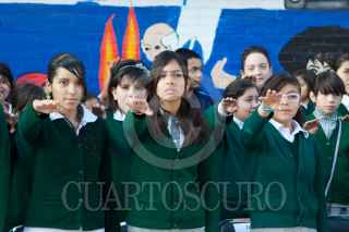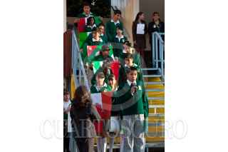 MÉXICO, D.F., 23FEBRERO2012.- Ceremonia de honores a la bandera en la Escuela Secundaria Diurna 55 "Maria Enrique Camarillo", ubicada en la colonia Narvarte. Mañana miles de escuelas de educación básica y dependencias celebrarán los honores al labaro patrio en su día nacional. FOTO: MOISÉS PABLO /CUARTOSCURO.COM