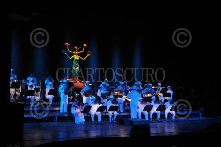 MÉXICO, D.F. 23FEBRERO2012.- La Orquesta Típica de YukalPetén celebró su LXX aniversario con un concierto en el Palacio de Bellas Artes la noche de hoy, además fue galardonada con una mención especial por parte de las autoridades de cultura y su director, Pedro Carlos Herrera fue abanderado con el estandarte de Embajadores del Mundo Maya por el Gobierno del Estado de Yucatán. Tuvo una participación especial el maestro Armando Manzanero. FOTO: FRANCISCO RODRÍGUEZ /CUARTOSCURO.COM