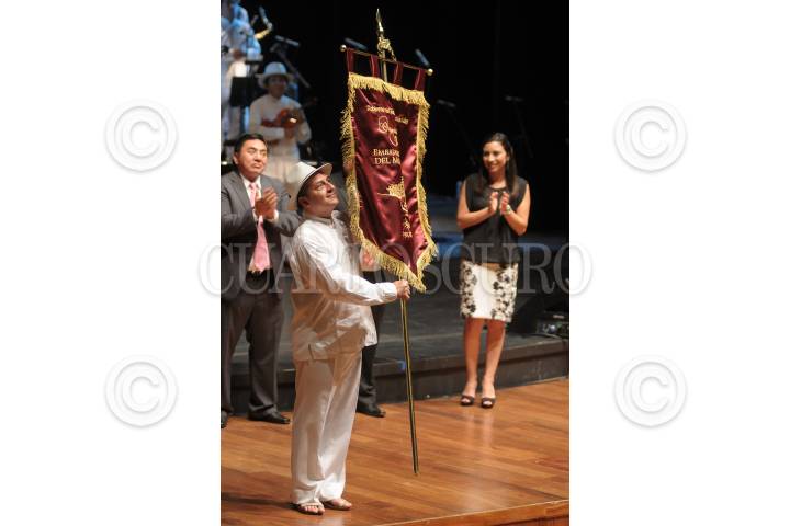MÉXICO, D.F. 23FEBRERO2012.- La Orquesta Típica de YukalPetén celebró su LXX aniversario con un concierto en el Palacio de Bellas Artes la noche de hoy, además fue galardonada con una mención especial por parte de las autoridades de cultura y su director, Pedro Carlos Herrera fue abanderado con el estandarte de Embajadores del Mundo Maya por el Gobierno del Estado de Yucatán. Tuvo una participación especial el maestro Armando Manzanero. FOTO: FRANCISCO RODRÍGUEZ /CUARTOSCURO.COM