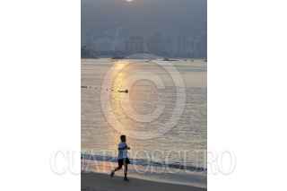 ACAPULCO, GUERRERO, 24FEBRERO2012.- Turistas realizan deporte en la playa de Santa Lucia corriendo para bajar esos kilitos de mas y tener muy buena salud. FOTO: BERNANDINO HERNÁNDEZ/CUARTOSCURO.COM