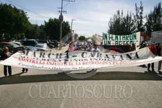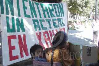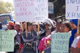 OAXACA, XANICA 20ENERO2005.- Habitantes de Santiago Xanica y militantes de la COMPA, inició una Marcha - Caravana con destino al D.F, para protestar ante gobernación por la injusticia y represión de sus compañeros quiene fueron encarncelados, injustamente acusados por los hechos violentos en una emboscada encontra de policías preventivos el pasado 15 de enero en la comunidad, teniendo como resultado la muerte de uno de ellos y cuatro heridos de gravedad. FOTO: Blanca Esthela Hernández/CUARTOSCURO.COM