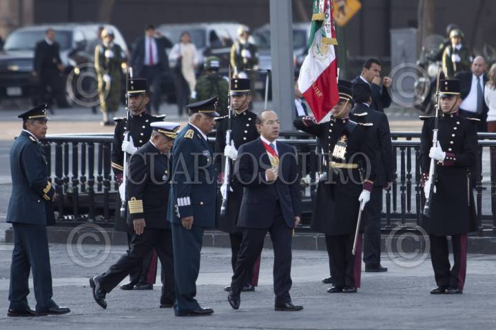 MÉXICO, D.F., 24FEBRERO2012.- Esta mañana se realizo la ceremonia por el Día de la Bandera en la Plaza de la Constitución que fue encabezada por el presidente Felipe Calderón. FOTO: RODOLFO ANGULO /CUARTOSCURO.COM