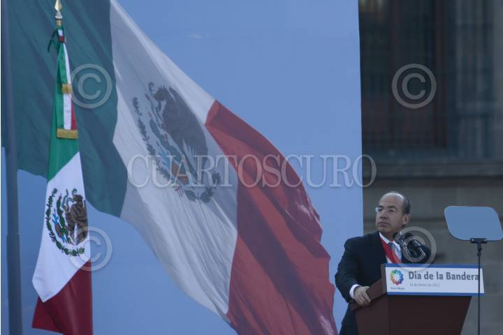 MÉXICO, D.F., 24FEBRERO2012.- Esta mañana se realizo la ceremonia por el Día de la Bandera en la Plaza de la Constitución que fue encabezada por el presidente Felipe Calderón. FOTO: RODOLFO ANGULO /CUARTOSCURO.COM