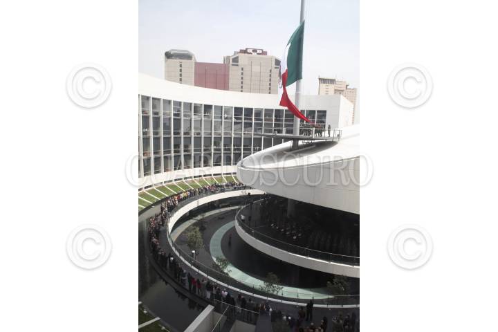 MÉXICO, D.F., 24FEBRERO2012.- La mañana de hoy se llevó acabo el izamiento del lábaro patrio en el Senado de la República a cargo de miembros de las fuerzas armadas, los senadores se reunirón al pie del asta para rendir honores. La Cuarta y última Bandera Nacional fue adoptada el 16 de septiembre de 1968, por el presidente Gustavo Díaz Ordaz. El Escudo Nacional fue diseñado por Francisco Eppens Helguera. FOTO: CUARTOSCURO.COM
