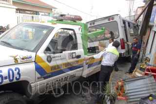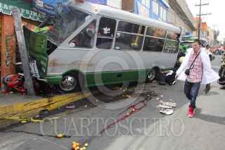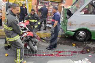 MÉXICO, D.F., 24FEBRERO2012.- Una mujer y un menor perdieron la vida después que un microbus quedara sin frenos y se impactara contra un negocio y una motocicleta en la calle uno en la colonia San Juan Xalpa en la delegación Iztapalapa. FOTO: SAÚL LÓPEZ /CUARTOSCURO.COM