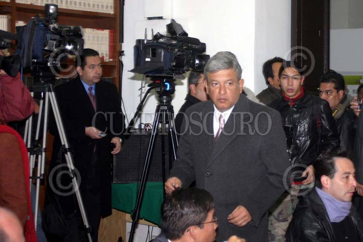 México, D.F., 21ENERO2005.- Andrés Manuel López Obrador, jefe de gobierno , durante la conferencia de prensa matutina en el Antiguo Palacio del Ayuntamiento. FOTO: CUARTOSCURO.COM