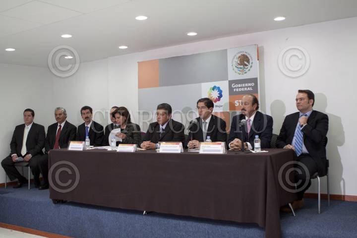 MÉXICO, D.F., 24FEBRERO2012.- Gerardo Badin, Christian Cadenas, accionista de Med Atlantica, y Fernando Perfecto, líder sindical de los pilotos, al finalizar el anuncio de que la empresa Mexicana será recapitalizada a través de una inversión directa de la empresa Med Atlantica, con esto se supera el año y medio de paro de actividades de esta empresa aérea. FOTO: MOISÉS PABLO /CUARTOSCURO.COM