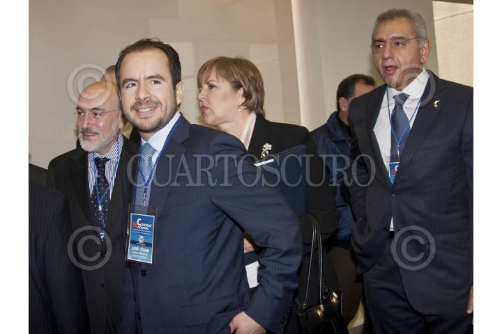 MÉXICO, D.F., 25FEBRERO2012.- Josefina Vázquez Mota, precandidata presidencial del PAN, posa con los gobernadores Marcos Covarrubias, de Baja California Sur, Emilio González Marquez, de Jalisco, Juan Manuel Oliva, de Guanajuato, Marco Antonio Adame, de Morelos, José Guadalupe Osuna Millan, Baja California Sur, Guillermo Padrés Elías, de Sonora, a su llegada a la sesión extraordinaria del Consejo Nacional del PAN, donde se votará el orden en que aparecerán en la lista los aspirantes al Senado. FOTO: ISAAC ESQUIVEL /CUARTOSCURO.COM