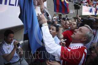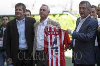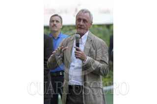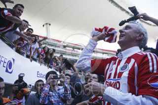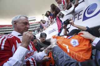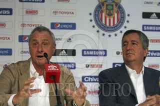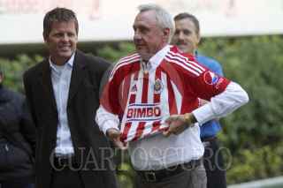ZAPOPAN, JALISCO, 25FEBRERO2012.- Johan Cruyff, leyenda mundial del fútbol internacional, fue presentado como asesor del club de fútbol Guadalajara, el anunció lo hizo Jorge Vergara Madrigal, dueño del rebaño sagrado. El acto se llevó a cabo en el Estadio Omnilife, que tras finalizar la rueda de prensa, el ex-astro del fútbol mundial compartió algunas reflexiones y regaló autógrafos a los aficionados que asistieron. FOTO: FERNANDO CARRANZA GARCÍA /CUARTOSCURO.COM
