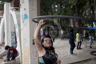 MÉXICO, D.F., 25FEBRERO2012.- Niños y jóvenes se divierten jugando ula-ula en el Parque Mexico. FOTO: MOISÉS PABLO /CUARTOSCURO.COM