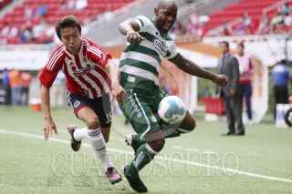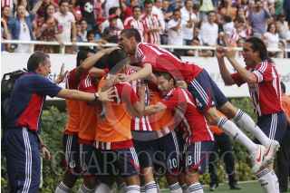 ZAPOPAN, JALISCO, 26FEBRERO2012.- Las chivas Rayadas del Guadalajara, se imponen 2-0 ante los Santos Laguna antes de terminar el partido. FOTO: FERNANDO CARRANZA GARCIA /CUARTOSCURO.COM