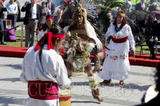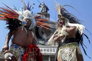 MÉXICO, D.F., 27FEBRERO2012.- Como parte del 487 aniversario luctuoso de Cuauhtemoc, se realizó una ceremonia en la estatua ubicada en Insurgentes y Reforma. FOTO: ENRIQUE ORDÓÑEZ /CUARTOSCURO.COM