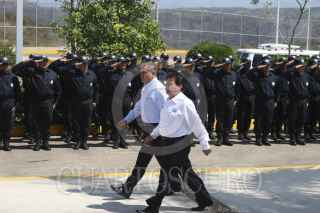 TEPIC, NAYARIT, 28FEBRERO2012.- Genaro García Luna, Secretaria de Seguridad Pública Federal, junto con Patricio Patiño Arias, Subsecretario del Sistema Penitenciario Federal, durante el recorrido y entrega del nuevo Complejo Penitenciario Federal Noroeste, mismo que albergara alrededor de 700 internos en áreas de máxima seguridad. FOTO: SAÚL LÓPEZ /CUARTOSCURO.COM