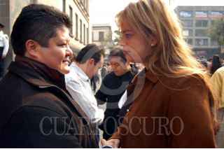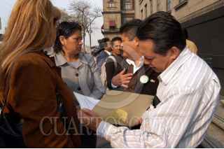 MEXICO, D.F. 21ENERO2005.- Los diputados perredistas Roberto Carlos Reyes Gámiz y Lorena Villavicencio a las afueras de la sede de la Suprema Corte de Justicia de la Nación (SCJN) despúes de intercambiar opiniones con el magistrado presidente, Mariano Azuela, referentes a los casos del Paraje San Juan y el desafuera del jefe de gobierno, Andrés Manuel López Obrador. FOTO: CUARTOSCURO.COM
