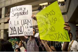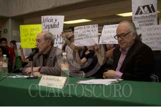 MÉXICO, D.F. 28FEBRERO2012.- El doctor Boaventura Sousa, sociólogo portugués y ganador del premio México 2012, ofreció una conferencia a alumnos de la Universidad Autónoma Metropolitana, la cual fue interrumpida por una protesta de estudiantes de esta casa de estudios quienes exigieron justicia por el asesinato del profesor Javier Uribe, quien fue asesinado en un asalto esta mañana a unos metro de la entrada principal de la UAM Iztapalapa. FOTO: PEDRO ANZA /CUARTOSCURO.COM