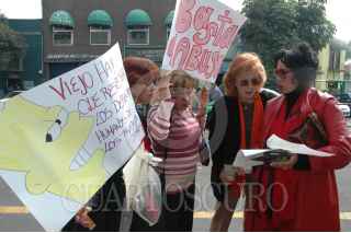MEXICO, D.F. 21ENERO2005.- Los actores que doblan la voz en español de los personajes de la serie "Los Simpsons" y dirigentes de la ANDA se manifestaron por le respeto al contrato de trabajo. FOTO: CUARTOSCURO.COM