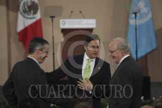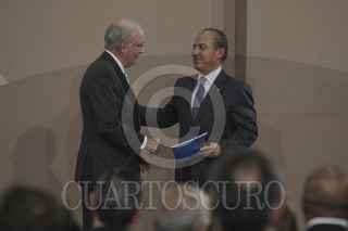 MÉXICO, D.F., 28FEBRERO2012.- El presidente Felipe Calderón, recibe el informe "Estado Mundial de la Infancia 2012, Niñas y niños en un mundo urbano" de Anthony Lake, director ejecutivo de la UNICEF. FOTO: JUAN PABLO ZAMORA /CUARTOSCURO.COM