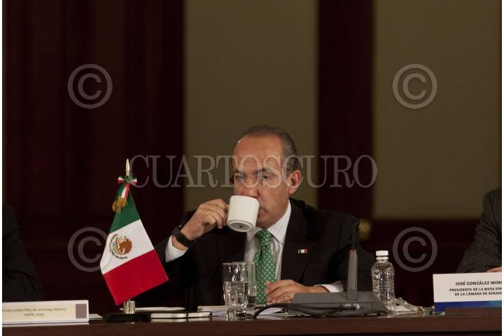 MÉXICO, D.F. 29FEBRERO2012.- El presidente Felipe Calderón acompañado de Genaro García Luna, secretario de Seguridad Pública; Guillermo Galván, secretario de la Defensa Nacional; Alejandro Poiré secretario de Gobernación; José Gonzalez Morfin, presidente de la mesa directiva del Senado de la República, José Francisco Saynez, secretario de Marina y Maricela Morales Ibañez, procuradora general de la República durante la XXXII Sesión del Consejo Nacional de Seguridad Pública que se realizo en el Salón Tesorería de Palacio Nacional. FOTO: RODOLFO ANGULO /CUARTOSCUO.COM