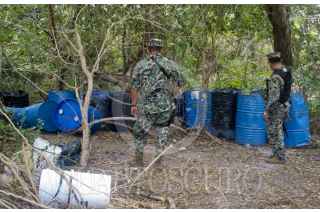 MAZATLAN, SINALOA, 29FEBRERO2012.- Elementos de la Secretaria de Marina, realizaron el decomiso de un narcolaboratorio en el Km 49 de la maxipista Mazatlan-Culiacan. FOTO: SEMAR /CUARTOSCURO.COM